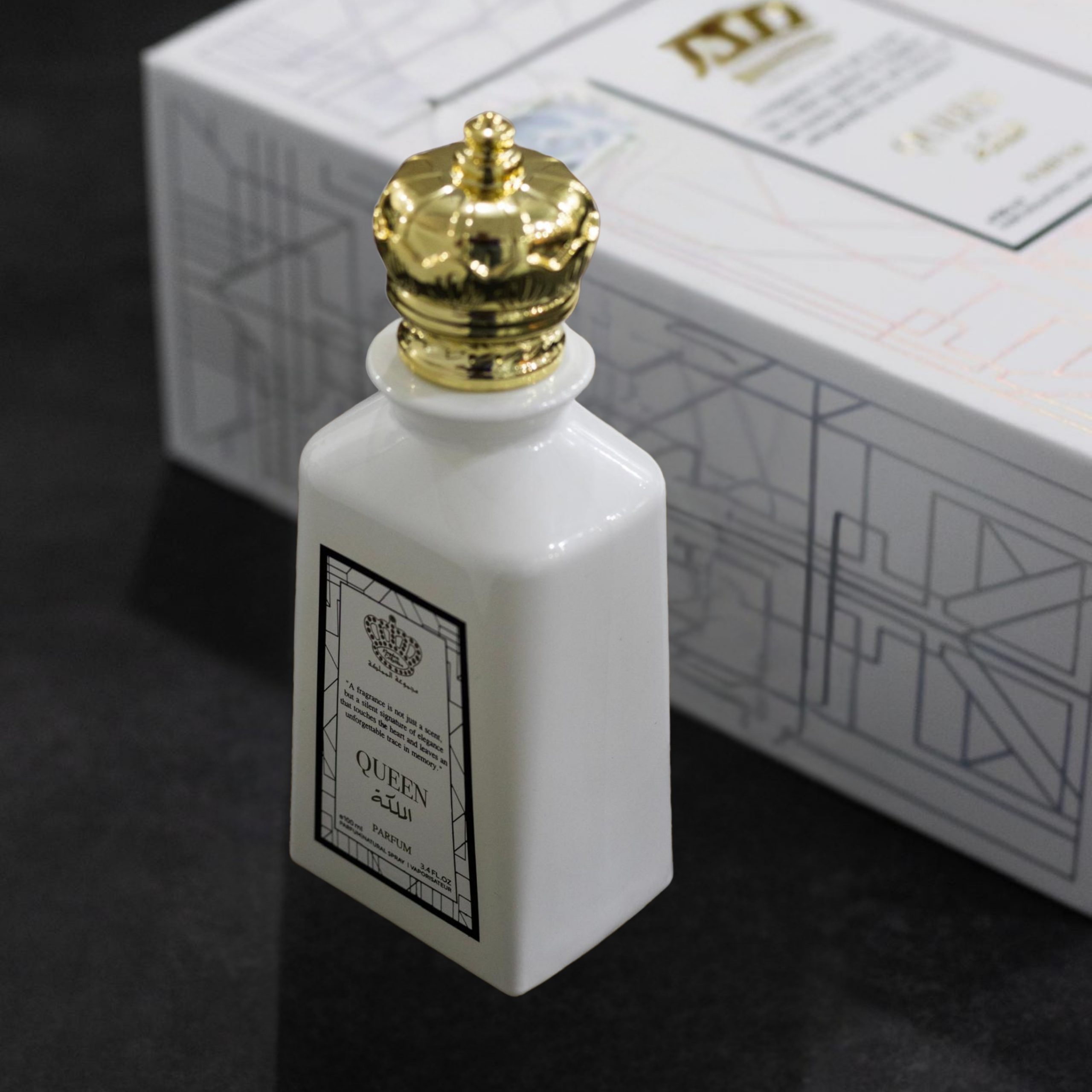 QUEEN , la fragancia que se convierte en tu joya más preciada. Esta exquisita creación olfativa está diseñada para que irradia lujo sin esfuerzo y una presencia inolvidable. Es un aroma que celebra la individualidad, la determinación y la belleza intrínseca de cada ser.